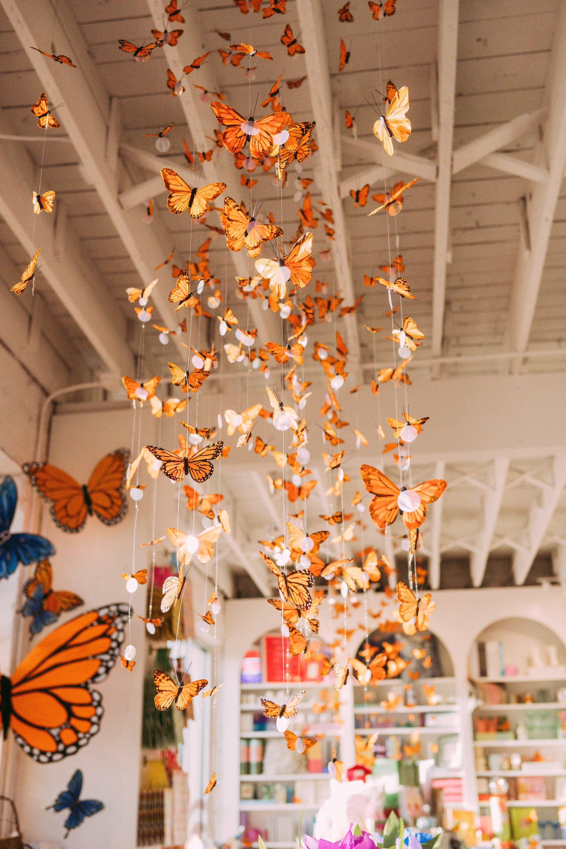 I created over 165 hand strung butterfly strings to hang over a few tables in the store.